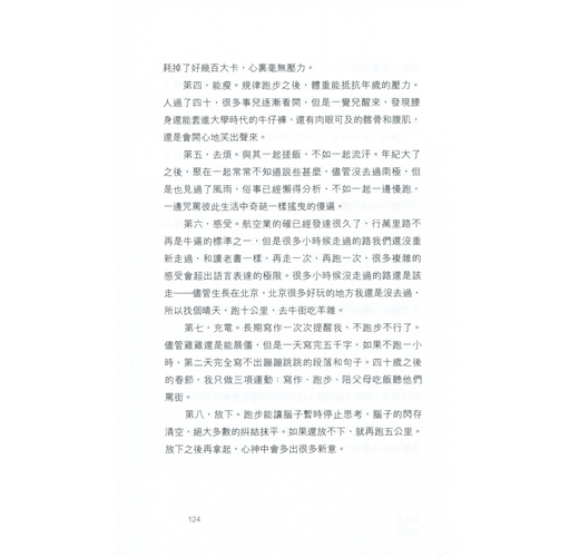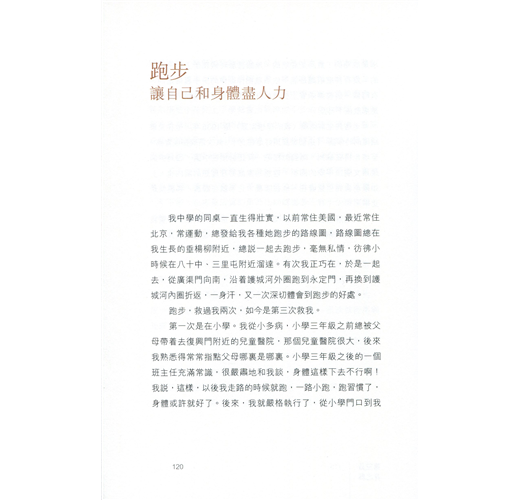 跑步能讓腦子暫時停止思考,腦子的閃存清空,絕大多數的糾結抹平。如果還放不下,就再跑五公里。放下之後再拿起,心神中會多出很多新意。