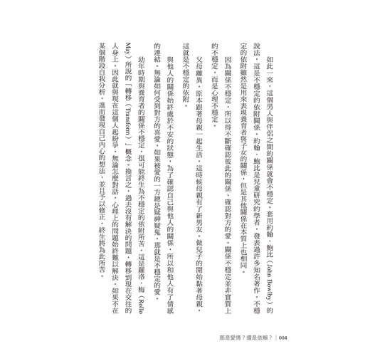在親近的關係裡,如果彼此有「希望你更認同我」的要求,容易引發激烈的衝突。不穩定的依附、依賴心、自戀、自我輕視等等,在這一類的心理狀態下,人們與身邊的人無法有坦然自在的關係。