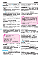 (四)版面清爽簡潔,詞條字體放大,查閱時更加便利,同時減少視覺上的負擔。而圖文格式的設計也排除了複雜的符號,讓讀者在查閱辭典時一目瞭然,達到易於使用 (user-friendly) 的目標。