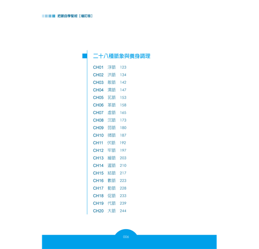 3.中醫經典28脈象一次掌握+感冒16型精闢分析+45項實用食療配方。