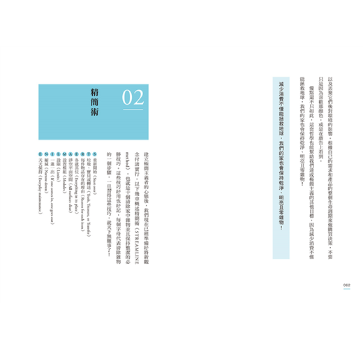 為了切合本書的目的,我們把上述觀念套在極簡主義上,就成了:「生活是物品與物品之間的空白。」雜物太多會遏制我們的創造力,還會讓生活失去和諧。相反的,我們所擁有的空間愈多,就愈能過著美好、和諧的生活。