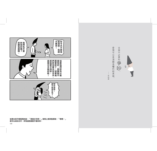 我們都有過這樣的經驗,在吵架時有一方突然笑了,就連原本在吵什麼內容也跟著忘記。這些過程若能讓你釋懷,便可能停止爭吵,化解隨之而來的尷尬對峙。這種方式是可以練習的,練習別笑得輕浮,別激怒對方,讓你在任何情況下,都不被情緒影響做出不可挽回的判斷。久而久之,甚至會影響到其他待人處事的態度。這就是我長年以來控管自己情緒的方式,希望能讓您產生新的想法,去思考「感情」這回事。