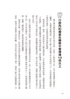 3.本書是針對口腔整體的健康進行保健,除了牙齒之外,更包括唾液、口部肌肉、鼻腔、呼吸等。並提供可實際促進健康的體操法。