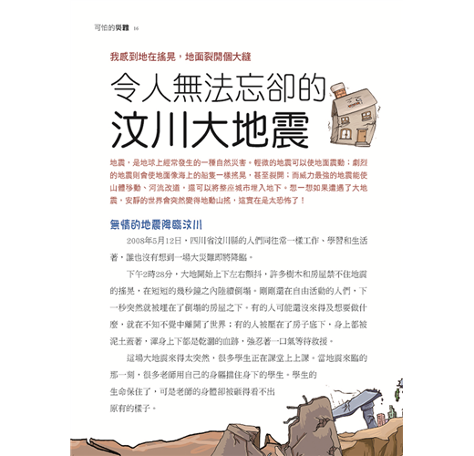 《神奇的探索》與《可怕的災難》就是在這種精神下自中國和平出版社引進,我們天生就有好奇心,年齡愈小愈強烈,《神奇的探索》以海洋、陸地與人文等3個面向,以生動有趣的故事體裁、誇張靈動的插圖,引導孩子在欣賞故事的懸疑氛圍中持續閱讀,並提問讓孩子加深加廣的思考,主題內容相當廣泛,其中有自然環境的探索、古代傳奇的探究、天文物理的尋索以及文化傳承的研究,讓我們不僅能增長了科普與人文知識,在閱讀涵詠中也培養追根究柢、探究歸納的科學精神。