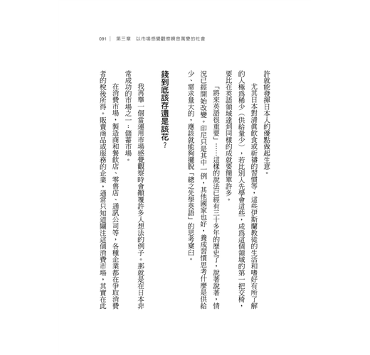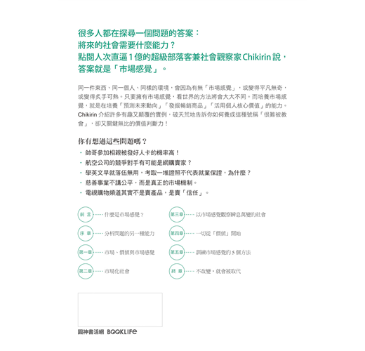 但是本書所要介紹的「市場感覺」,從一般上班族、公務員、學者、醫生到全職主婦、藝術家、工程師,還包含與金融或業務完全不同領域的人,所有人的工作態度和生活方式都息息相關。