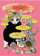 近年快速竄紅的日本插畫家Higuchi Yuko,作品充滿獨特魅力,虜獲了許多讀者的心。她最常作畫的主題是擬人化的動物,尤其貓是她最常描繪也最喜歡的題材。作畫風格乍看甜美可愛,像是猶如從時尚雜誌中走出來、海軍度假風打扮的貓,或是穿著蓬蓬裙的貓,卻也常加上不可思議又有些詭異的細節,像是頭上莫名長出蘑菇、或是尾巴換成章魚腳等。畫風相當細膩,除了表現在動物毛皮上,動物的表情彷彿也都在訴說自己的故事,身上的服裝首飾細節驚人,有時也以華麗的風格帶出奇想的世界觀。這種可愛vs.華麗、甜美vs.詭異殘忍的衝突,增添了作品的可看性,也正是她脫穎而出的關鍵。