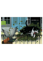 身為愛貓一族的我,在看到《屋頂上的貓》的英文版繪本時,深深為其中的插圖所吸引。羅傑‧梅德(Roger Mader)把貓的習性和動作畫得維妙維肖,讓人拍案叫絕;而貓細膩的神情,或好奇、或兇、或害怕,他更掌握得精準不已,讓大小讀者隨著生動的畫面起舞。整本書除了插畫有趣又精緻,文字淺顯又易懂,甚至不需要文字,看圖就能猜出劇情,從頭到尾跟著故事中的貓,就可以看懂整個故事,有些頁面設計像漫畫般一格一格的,緊湊又懸疑,讓讀者的視線與想像力隨之延伸與擴展。