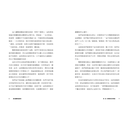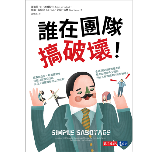如今,在水泥叢林的商業戰場裡,這些破壞潛伏在你我的工作環境之中,隱身在眾人習以為常的辦公行為之後,拖累團隊的努力與付出。原來,搞破壞的根本就是自己人!本書內容深入淺出,針對破壞各個擊破,同時提出一套有效方法,幫助個人與團隊提升工作效能,發揮最大生產力。