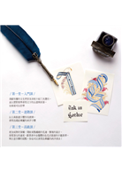 然而,由於缺乏中文的英文書法相關資料的關係,許多朋友經常告訴我,那些雜亂的英文網路資料,和一堆不知該如何使用的工具,總讓他們望之卻步、不知該從何下手。因此,本書中特別著重於工具與字帖的閱讀,以及墨水使用細節上需要注意的小知識,讓初學者能快速上手,並額外收錄了進階的彩色花體字示範。期望本書的出版,能給想學習英文書法的朋友一些指引。
