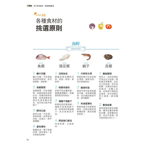 從新鮮食材挑選和清洗撇步開始,教導孩子飲食正確觀念,養成良好飲食習慣。用心料理製作各種孩子愛吃的原味副食品,邊食邊學,讓孩子樂在主動進食。