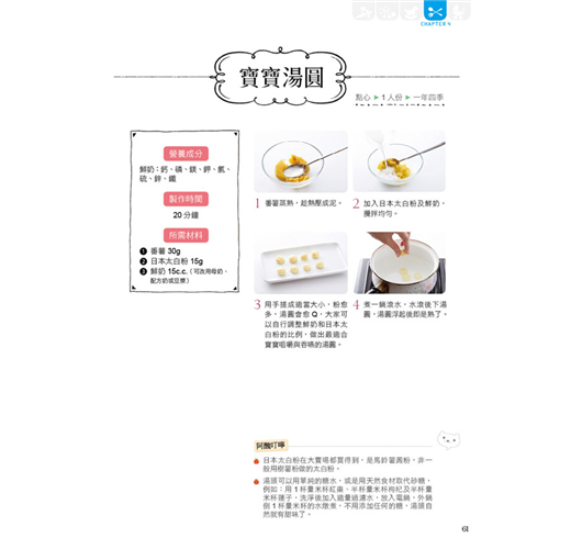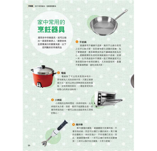 嚴選多種食材,從廚房隨手可得的道具電子鍋、電鍋、烤箱、平底鍋、水煮,變化出各種營養幼兒食譜!全圖解步驟,加阿醜媽咪配方,眾多新手媽媽一試就OK!