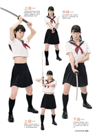 ◎女高校生大動作示範,身著水手服+制服+泳裝,完全透析肢體動作、服飾皺摺!