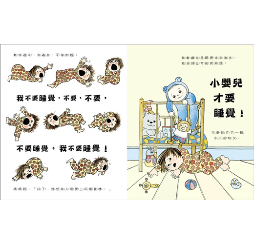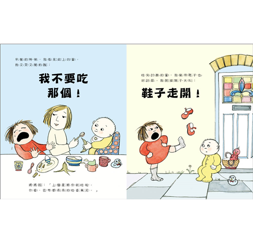 ◎多數幼兒在面對挫折的時候,常會很想大叫和發脾氣,這本書根本就是我家小孩的寫照。當我和孩子共讀這個故事,他們看到貝拉躺在地上打滾耍賴、不肯上床睡覺的畫面,兩人都哈哈大笑。他們發現自己有些行為和貝拉很像,有趣的是,兩兄弟都覺得貝拉看起來真是太好笑了!