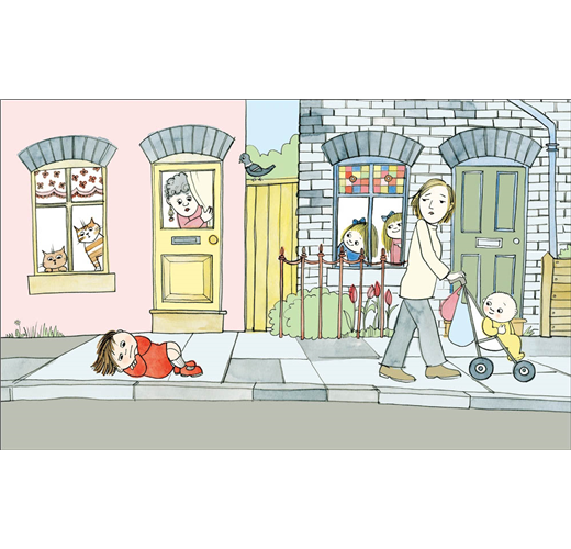 也許有人會覺得好奇,貝拉並沒有受到處罰,不過對我來說,在這本書中,作者描繪了貝拉在面對不順心的一天時,如何以各種行為──哭鬧、挑剔、抱怨來表達她的壞心情,那完全就是一個三歲幼兒的真實樣貌。他們會拒絕某種食物,隨時都想脫掉鞋子,不斷的挑剔,在公開場合大呼小叫……作者對貝拉的包容並不代表認同貝拉的行為,這一點從圖畫中玩偶和路人不滿的表情就看得出來。