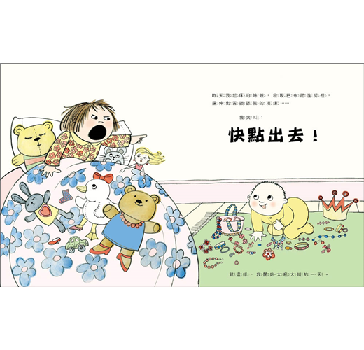 ◎貝拉的一天,從起床看到弟弟入侵她的房間、舔她的寶貝項鍊開始,然後接連發生了不如意的事。種種不滿讓貝拉抗議、挑剔、耍賴,最後當她主動、無辜的為大吼大叫道歉時,媽媽無條件的接納了她的情緒。