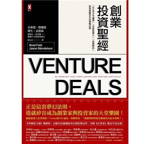 記得我剛參與創投融資時,除了向資深的律師學習、大量閱讀資料、不斷在與對手律師談判的過程中累積經驗外,一直沒有一本有系統、完整介紹創投融資的書可以參考。直到我事務所裡的一位資深合夥人Yokum Taku,介紹我閱讀 《創業投資聖經》這本書,才讓我對創投融資有更深入且透徹的了解。《創業投資聖經》 內容之完整、精確, 瞬間成為矽谷所有新創律師人手一本的必讀書籍。回到台灣後,我在許多場合也強力推薦這本書給創業家、投資人、以及所有想了解創投融資的人。今天很高興野人文化願意翻譯並在台灣出版。