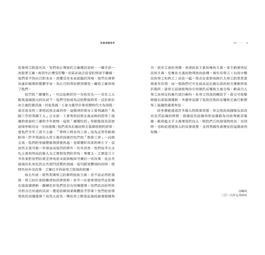 《憤怒的白人》一書説的不止一個有關白人勞動階層的故事,而是道出了英國社群中的裂縫如何慢慢由九十年代西方世界介入中東產生,到近年來澈底撕裂傳統英國社區的過程。作者細緻的觀察,剖析了來自貧困勞動階級任何種族的可憐人們,是如何因爲菁英階級多年來的漠視以致跟不上政經大環境的腳步而各自衍生出激進組織背後的思緒,最後孕育了極端主義的脈絡。這本書對在英國脫歐公投之後歐洲日益氾濫的排外情緒有比媒體上看見的非黑即白更爲深刻的理解,不止每位研究歐洲政治社會的學人需要細閱這本書,在全球化每天沖刷著傳統社會架構的今日,生活在地球村的每一位居民都應該在看完這部書後細心思考應該用什麽態度去應對不可避免的種族和文化融合。