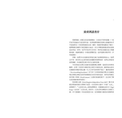其實,我們今日所處的世界就充滿了這樣憤怒的白人,他們之中有一部分的人已成為極右派運動的基層成員。這些正快速成長的運動,形成歐美社會不得不...