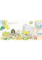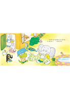 帕歐和朋友們享用著美味大餐,吃得好飽唷!低頭一看,糟糕,大家的衣服上都被湯汁滴得髒兮兮,該怎麼辦呢?不如把髒衣服、髒褲子,全部丟到水池裡洗一洗吧!