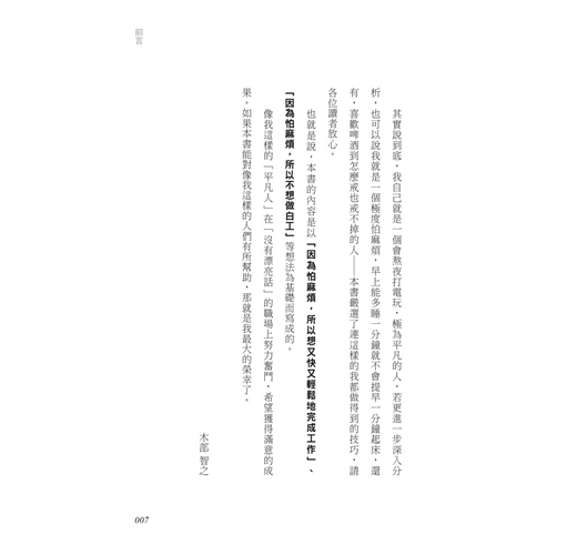 像我這樣的「平凡人」在「沒有漂亮話」的職場上努力奮鬥,希望獲得滿意的成果。如果本書能對像我這樣的人們有所幫助,那就是我最大的榮幸了。