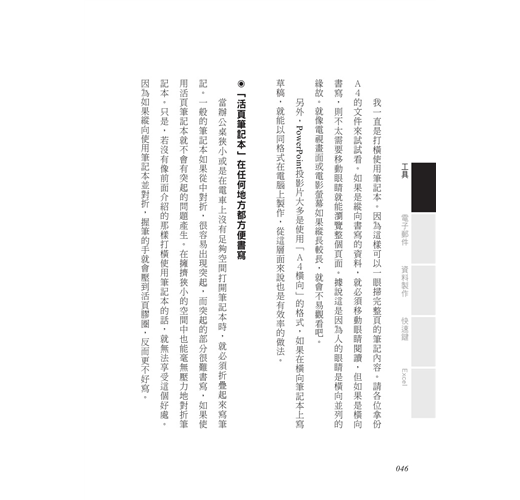 能夠快速書寫、快速理解。為了做到這點,我對於筆記本有三項堅持。