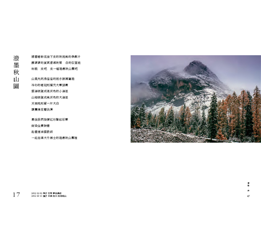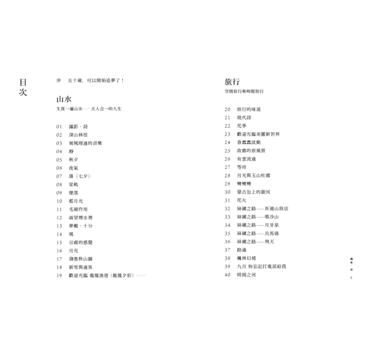 五十歲脫貧成功了!五十歲閱歷豐饒了!五十歲思維成熟了!五十歲了!真的要對自己好一點,把年少時代為了生活而犧牲掉的理想找出來,將自己的人生缺角填滿,生命更圓滿!五十歲,我重新拿起熱情的筆,因為筆也拿起筆的好朋友「相機」!找回自己最初的想戀,「我手寫我心、我心攝我影」。「詩」和「攝影」會是我在未來生命中,陪伴我享受孤獨享受生活的最佳伴侶工具!