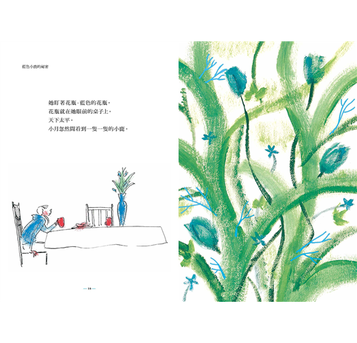 這個加入奇幻元素的小說,因為插畫家馬蒂亞斯.德列歐出色生動的插畫,讓故事中呈現的各種情緒與畫面——神祕、幽微、緊張與愉悅祥和——,躍然紙上,但又留有讀者想像的空間。