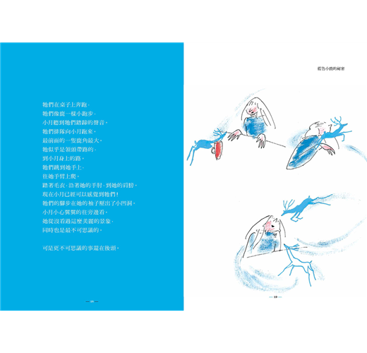 是一隻力量強大的龐然巨獸,亦或像故事裡的主人翁小月一樣,是一群迷你輕巧的小動物呢?而,屬於小月的秘密動物,藍色小鹿,又為什麼是13隻呢?13這個數字,有特殊的意義嗎?
