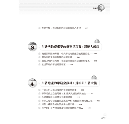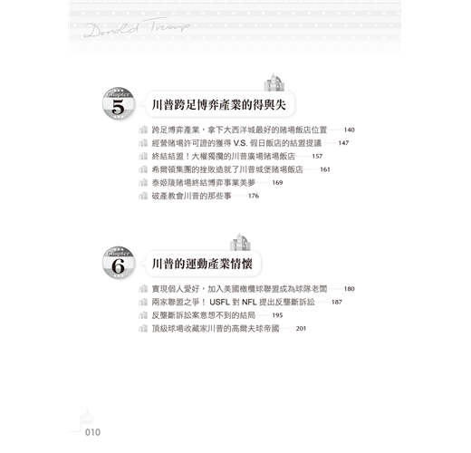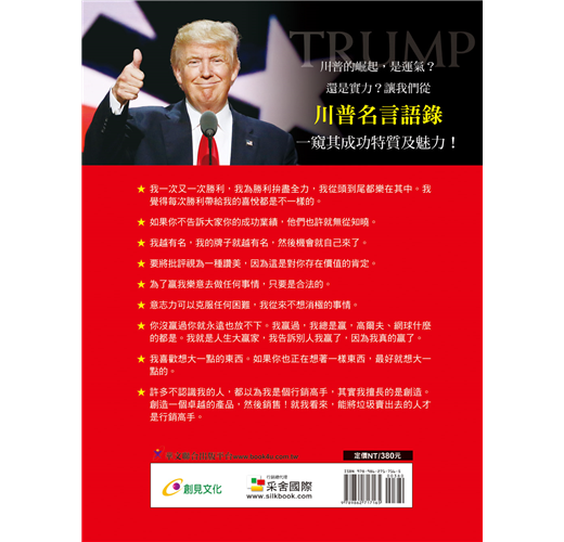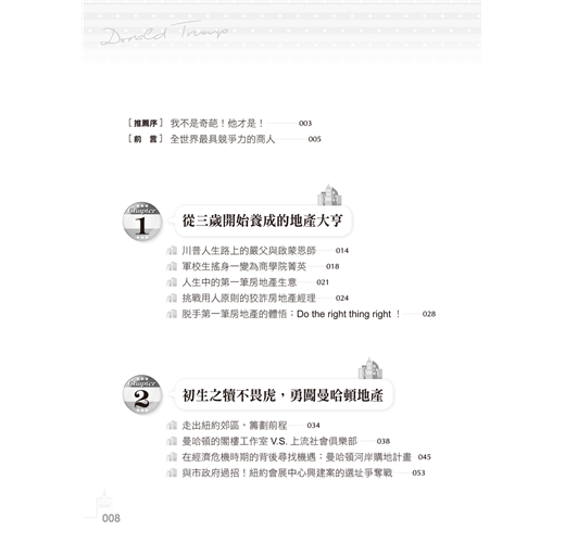 本書每一章講述他每一事業階段的故事及行事哲學,川普能夠數次瀕臨破產,卻又屢屢起死回生,靠的就是這些訣竅。川普的種種經商經驗不論是成功的或是失利教訓就是一部經典。理解川普,學習川普,就是掌握成功之道。這是幫助你戰勝逆境、實現夢想的金鑰匙。