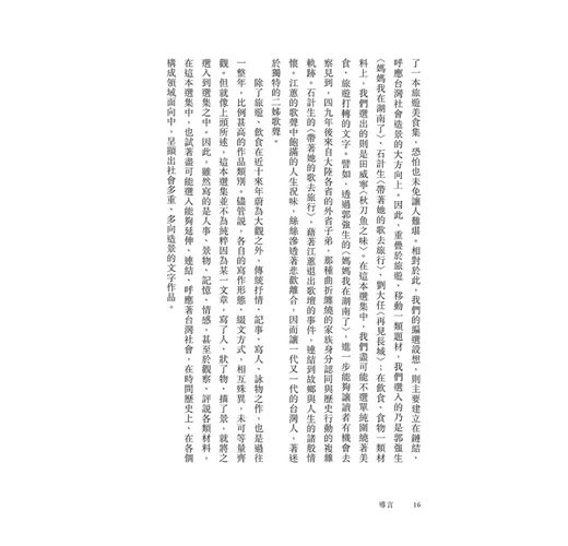 如此一來,可好了。如果有那麼多大家都已經看熟了、甚至看爛了的題材,偏偏正好是過去一年出現頻率極高的作品類別,那麼,這本選集該怎麼辦?繼續選,不予理會,還是乾脆通通都不選?個人以為,即使在這類幾乎已經浮泛到熟爛的作品中,依舊還是存在著相當數量、值得細細品味欣賞的好文章。但話又說回來,就像前頭所述,這本選集終究不是為了挑選出一篇篇、美輪美奐,讀了讓人賞心悅目或食指大動的作品。同時,過分依傍比例原則,最終編成了一本旅遊美食集,恐怕也未免讓人難堪。相對於此,我們的編選設想,則主要建立在鏈結、呼應台灣社會造景的大方向上。因此,重疊於旅遊、移動一類題材,我們選入的乃是郭強生〈媽媽我在湖南了〉、石計生〈帶著她的歌去旅行〉、劉大任〈再見長城〉;在飲食、食物一類材料上,我們選出的則是田威寧〈秋刀魚之味〉。在這本選集中,我們盡可能不選單純圍繞著美食、旅遊打轉的文字。譬如,透過郭強生的〈媽媽我在湖南了〉,進一步能夠讓讀者有機會去察見到,四九年後來自大陸各省的外省子弟,那種曲折纏繞的家族身分認同與歷史行動的複雜軌跡。石計生的〈帶著她的歌去旅行〉,藉著江蕙退出歌壇的事件,連結到故鄉與人生的諸般情懷。江蕙的歌聲中飽滿的人生況味,絲絲滲透著悲歡離合,因而讓一代又一代的台灣人,著迷於獨特的二姊歌聲。