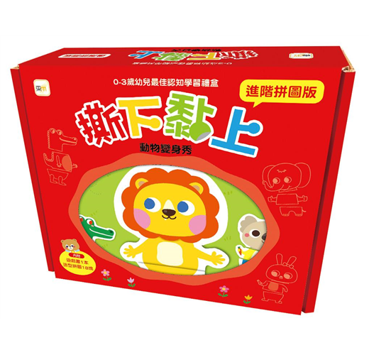 每張動物圖卡分為三部分,小朋友可針對內頁活動進行拼圖遊戲,