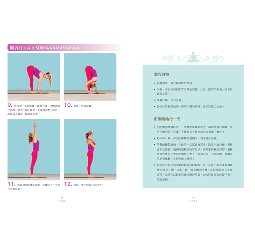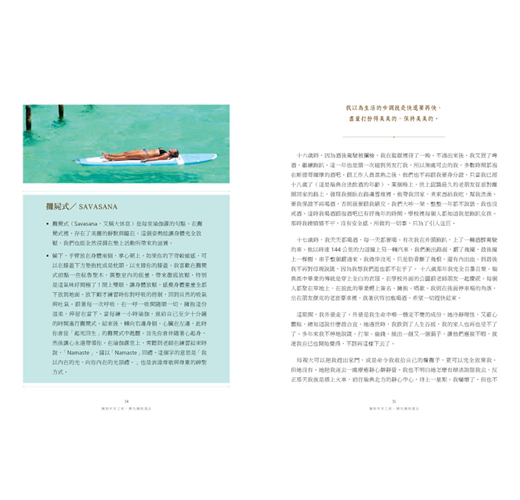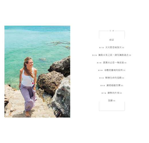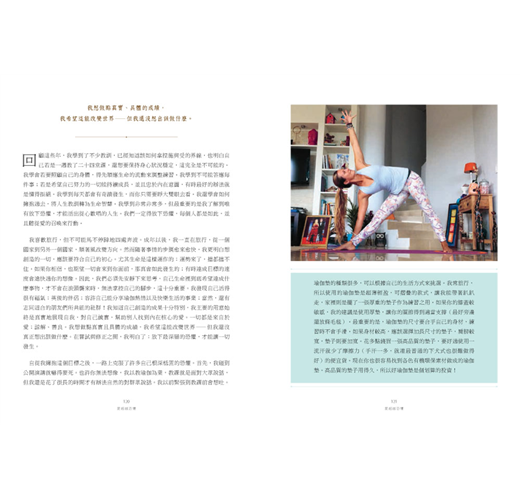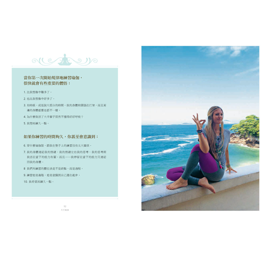 對我來說,在生活中取得成功和平衡的最佳途徑,就是持之以恆地練習瑜伽。雖然瑜伽源自於印度,擁有五千多年的古老歷史,也有非常多不同形式的練習,但相當適合我們生活的現代社會。除了大家所熟知的墊上體位法練習外,我們更能從中學到更多的生活方式,應用在周遭的世界裡。這本書的目的是幫助你了解,身為瑜伽練習者的生活,並回歸到練習的根基:創造安靜的片刻。唯有在寧靜中,才能發生真正的突破:也就是回到生命的優先事項,看到自己的重點,對自己的愛,以及對周遭人的愛。我想要鼓勵你成為最好的自己,接受並擁抱自己的每個面向。