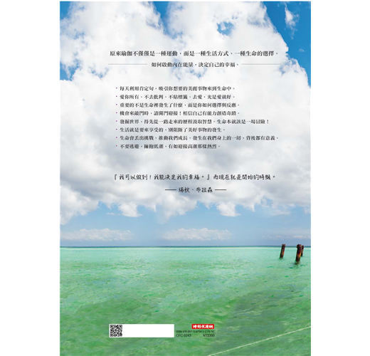 『我可以做到!我能決定我的幸福。』好的動機和開始,始自於很多好的想法。雖然有些時候,生命會給你兩記重擊,再投出變化球,但只要你學會如何適應生命的流動,將能幫助你找到一個平衡的生活方式。而瑜伽生活,就是幫助學習適應生命流動,創造人生新高峰的最佳選擇。