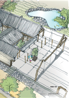 另外,大廳兩旁各有一個天井,這兩個天井讓冬天大門緊閉時,室內空氣還是可以跟外界流通。天井下還有石板打造的雕花花台,高度剛好到他的脖子,所以他常靠在花台上,忘情地觀察螞蟻。