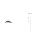 我們會按自己或他人的期望行事,從而下意識的做出許多重大決定。但我想經由這本書,協助你稍微甩開這些期望,並請你回答一些問題。如果你讀到某個段落而不太高興,你該停下來想一想背後的原因。也許我們的想法確實南轅北轍,那也沒辦法,只得接受,但無論如何,你該先留意我所寫的是否已挑動了你的某根神經,那可能就是改變的契機。畢竟要承認自己需要改變當然會感到不快。