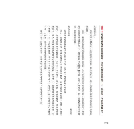 疑惑4:母親是糖尿病患者合併腎臟病,多年來肌酸酐值變化不大,為何在1年內突然飆高?