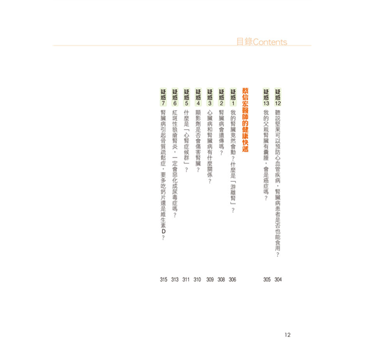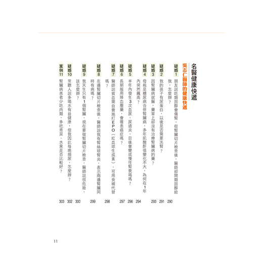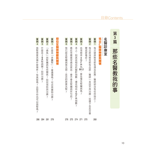 10位醫界腎臟病專家,詳細解析100個最常見的腎臟病問題,破解相關迷思;並列舉30個經典實例,瞭解如何於生活中防治腎臟病,找回健康人生。