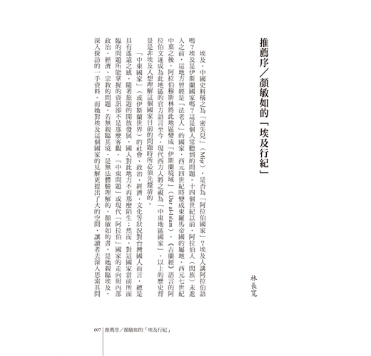 《焦慮的開羅》截水斷流,只反映出埃及二十一世紀初革命前、後的側景與背影。真正的埃及有如尼羅浩蕩,它的宏偉壯大,它的無邊傷痛,與任何國家民族無異,需要更多更細地了解。