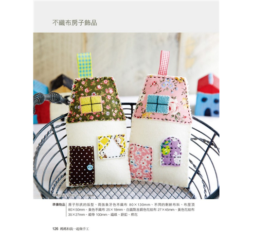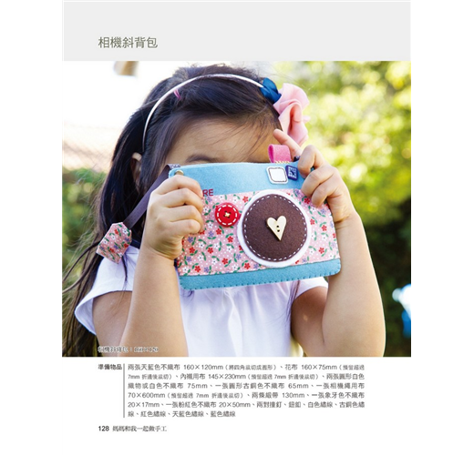 書中收錄許多孩子跟媽媽能一起共同製作的簡單小物,可以讓孩子幫忙作品上色或用木工膠水黏貼自己挑選的釦子、珠子等,增加親子間互動。作品雖然可以用裁縫機快速地完成,邊跟孩子聊天邊慢慢縫製,這樣的親子手作回憶是無可取代的禮物。
