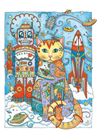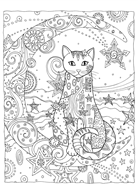 在貓星人優雅的外表下,孩子氣的靈魂蠢蠢欲動,現在就跟著牠的步伐,來趟趣味而又魔幻的著色之旅吧!