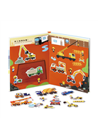 本書有4大工程主題場景:整理工地、建造房屋、鋪設馬路及架設水電管線,另有45片工程車和裝備磁貼,隨書附有磁貼收納袋,方便收納。