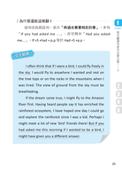 要是這個願望能成真,我可能會先飛到亞馬遜河(the Amazon River)。由於聽說那裡的雨林生態豐富,從小我就希望有朝一日,能夠到雨林探險,而且說不定在那裡,我會遇到很多新的「鳥」朋友呢!2. 不過要是你今天早上問我想不想當一隻鳥,也許我的答案會有所不同。