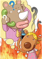 聽完張飛的故事,我的臉上出現了三萬條線,因為他不只偷別人的故事(成語「抱薪救火」的故事),而且偷的還是一個笨得讓人受不了的故事。水可以滅火,是因為水會隔絕空氣,至於木柴不但不能阻絕空氣,還會助燃,所以用木柴來滅火,火只會越燒越大!