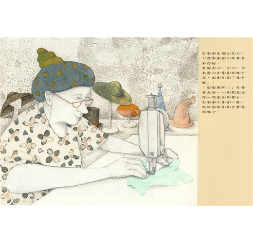1.畫風評介:本書繪者擅長以各種媒材創作,在本書特別以大量的拼貼作畫,仔細觀察,不難發現很多是從報紙和書上剪下來的紙片。故事中的史婆婆會依據不同的人,選出不同的帽子,繪者也依此要領,讓不同的帽子呈現出不同的景致,每翻一頁就好像是來到了一個全新的世界。如果有相同的心情,即使戴不到史婆婆的特製帽子,只要看著畫面,就能得到內心的舒緩,帽子好像就真的戴到了頭上呢!