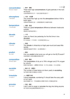 針對每個難度較高的進階主題詞彙,提供4個由短到長的句子,深入學習用同一個單字進行表達的方式。由於詞彙豐富度與文法複雜度是寫作與口說的評分標準,如果考生表達時使用的句子太過簡單,不但無法完整表達自身的想法,也難以獲得高分。利用此部分練習擴充句子的內容,並且嘗試較為複雜的句型結構,能夠有效提升寫作與口說的實力。而且,此部分涉及各種專門主題的深入探討,能夠加強考生對不同領域的熟悉度,避免在遇到比較困難的題目或術語時,發生詞窮、語塞的狀況。