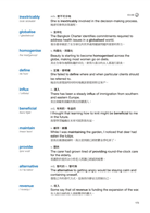 提供5個意義相近的單字,以及5個形態相近的雙字詞彙,每個詞彙都有例句示範。在意義相近的單字方面,除了作為變換表達方式的參考以外,也能練習比較意義與用法上的細微差別。至於雙字詞彙,以一般文章中經常出現的正式術語為主,是單字學習者特別容易忽略的部分,卻經常是長篇閱讀中的關鍵。因為從字面可能無法推測準確的意義,所以平時就熟悉並且了解這些實用的術語,將有助於正確了解閱讀文章的內容。