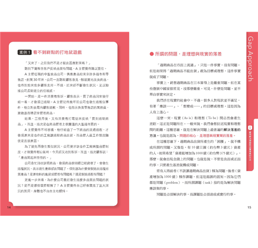 這麼一來,現實(As is)和理想(To be)間必然會產生差距,這正是問題所在。一般來說,我們會想拉近現實和理想間的距離。這種思維,就是在解決問題上最
