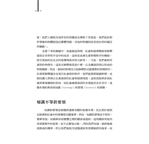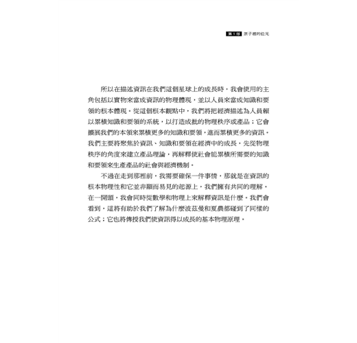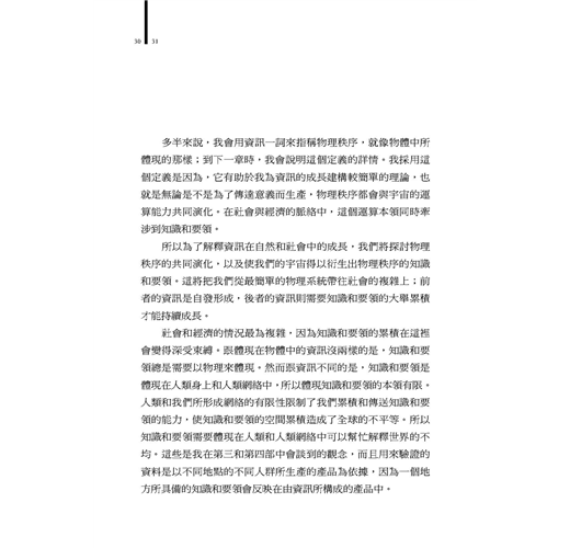 2. 《資訊裂變》可解釋一切經濟行為與不均,甚至擴及文明成長的基本原理。經濟成長不過是一個更大、更全盤、更要緊現象的「附帶現象」;經濟榮枯與區域發展的關鍵,在於對資訊的善用與累積。