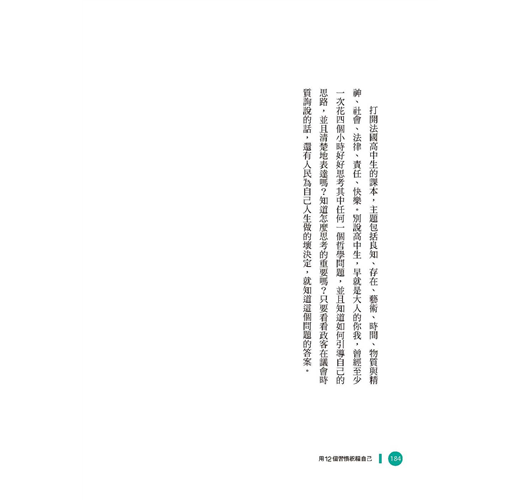像法國高中生那樣愛哲學,像德國人一樣紀律,像推理小說來發展自己的視野;