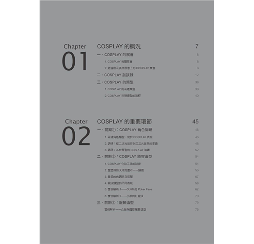 從分析角色特點、尋找參考資料、草擬角色示意圖,到最終COSPLAY照片作品,讓你按圖索驥,快速步入角色扮演的迷人世界。